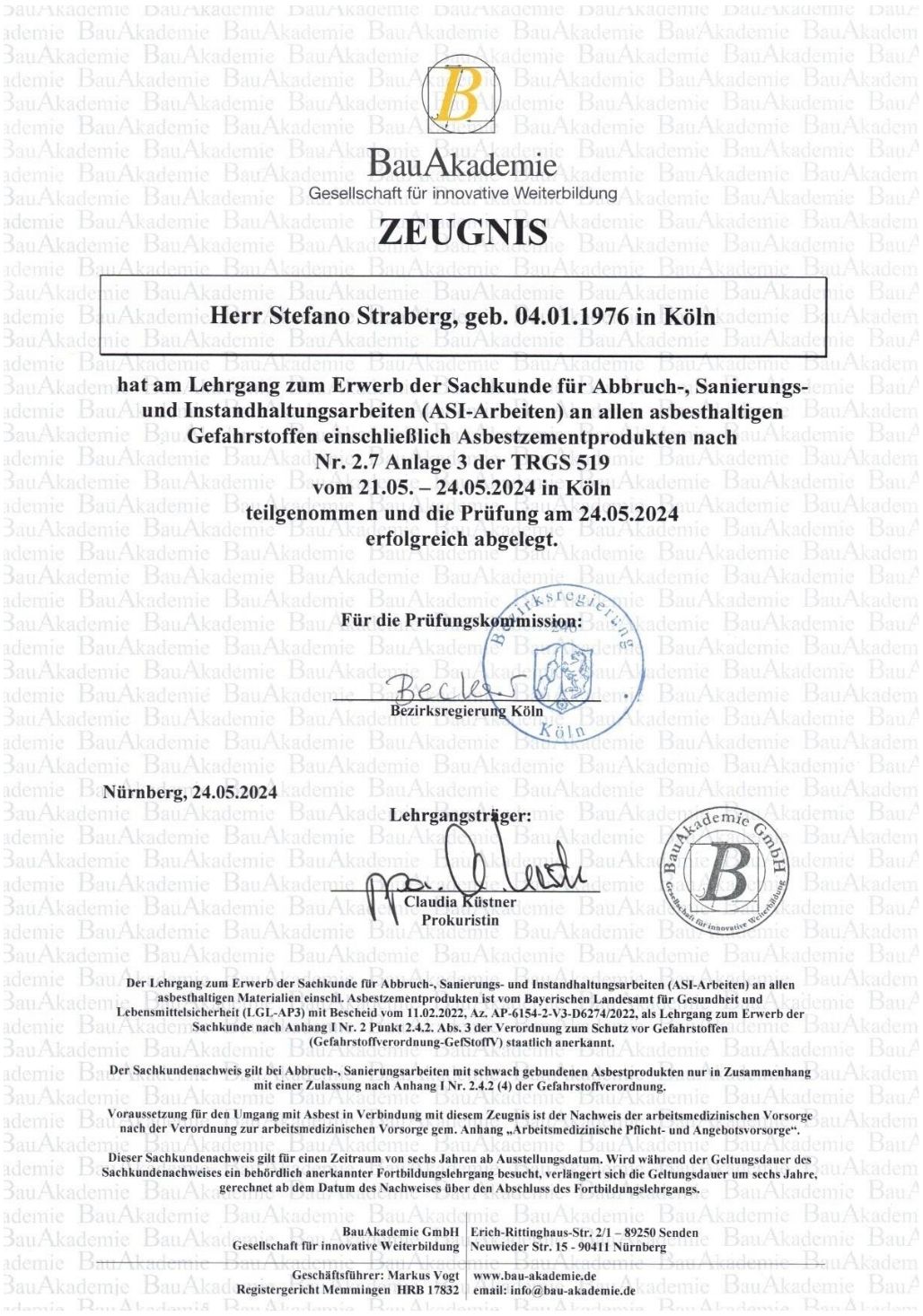 Alle unsere Fachkräfte verfügen über anerkannte Sachkundenachweise und regelmäßige Schulungen.